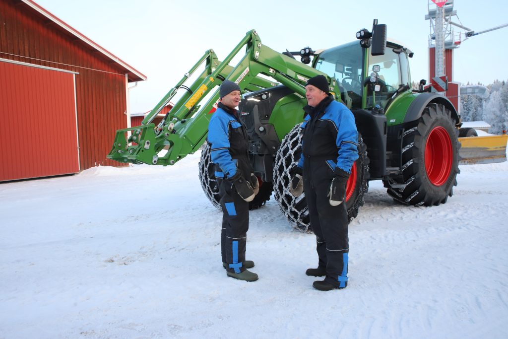 Veljekset Vesa ja Ari-Pekka Hirvonen. Taustalla Fendt Fendt 728 Vario -traktori.